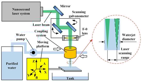 Working principle of coaxial waterjet assisted laser scanning machining (CWALSM).