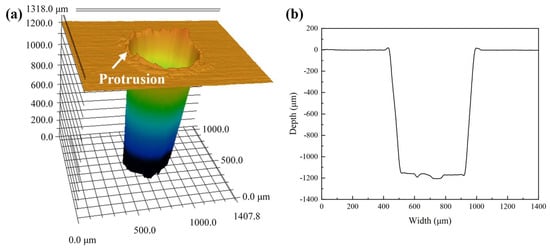 Hole machined by laser in air. (a) 3D profile, (b) Cross-sectional profile.