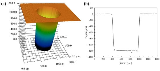 Hole machined by CWALSM. (a) 3D profile; (b) Cross-sectional profile.