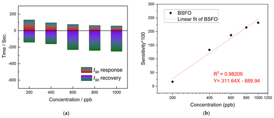 (a) Response/recovery dynamics. (b) Logarithmic dependency for the BSFO sensor.
