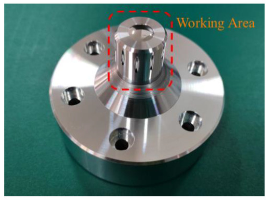 The radial error of the ultra-precision spindle used in this paper is between 10 nm and 50 nm. Therefore, the roundness of the designed standard workpiece should also be guaranteed in the same order of magnitude through ultra-precision turning. The effective working area of the standard workpiece is a cylinder with a diameter of 20 mm, as shown in Figure 8. According to the performance of the ultra-precision lathe, the roundness of the effective working area of the standard workpiece is between 15 nm and 20 nm.