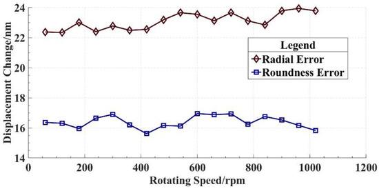 In order to validate the reliability and stability of the in situ measurement and evaluation system, measurements based on the system are performed at different spindle speeds. The measurement results are presented in Table 1, and a line graph is drawn based on the measurement results, as shown in Figure 16.