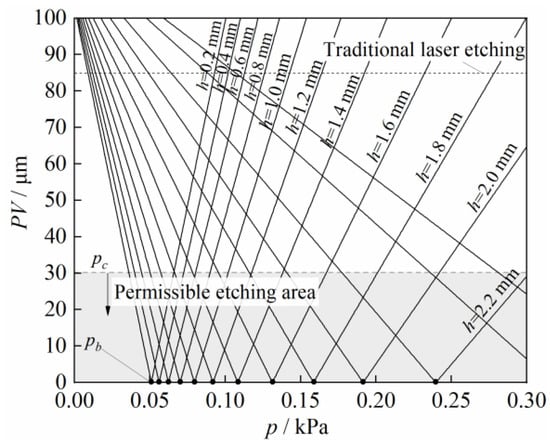 - The application of micro-airflow array pressurization enhanced the uniform pressure distribution on a large area of the glass surface, thus facilitating the positioning of the etched surface. The maximum positive pressure was achieved under the micro-airflow air bearing and the maximum positive pressure linearly depended on the air flow pressure and the etching gap. Insufficient pressure was not enough to press down the surface, while an excessive pressure would cause excessive micro-deformation in the processing area, leading to incompleteness of the final etched lines.