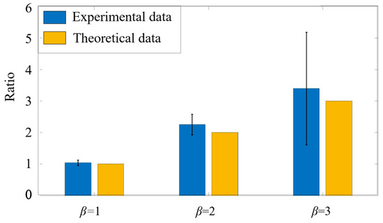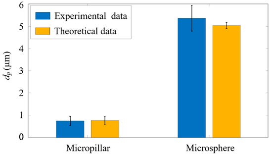 The experimental observation of the ratios between micropillars and microspheres is compared with the theoretical ones, as shown in Figure 13. When the theoretical is 1, 2, and 3, the experimental ones are 1.039, 2.252, and 3.394, respectively.