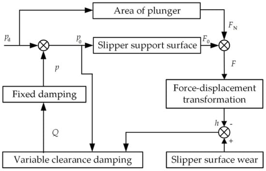 - Based on the fractal theory, the mathematical mapping relationship between oil film thickness and surface morphology fractal characterization parameters is derived, and the adaptive friction mechanism model of the slipper pair is established by combining the oil film stiffness equation, the friction coefficient equation, and the residual pressing force equation.
