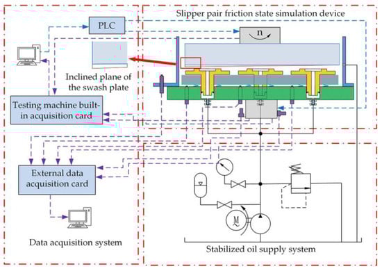 - Liu, S.Y.; Zhang, Y.Q.; Ai, C.; Ge, Y.; Li, Z.A.; Zhu, Y.; Hao, M. A new test method for simulating wear failure of hydraulic pump slipper pair under high-speed and high-pressure conditions. Front. Energy Res. 2020, 10, 1096633. [Google Scholar] [CrossRef]