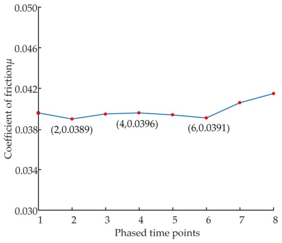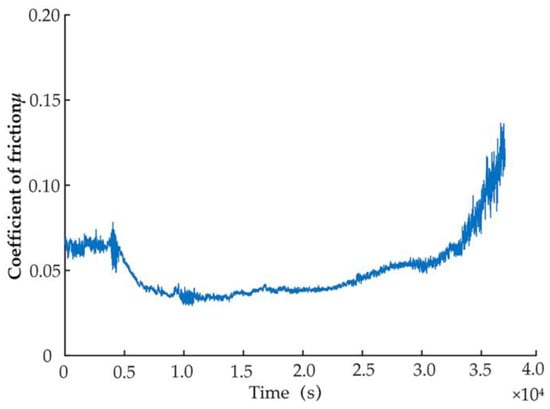 - During the experiment, the friction coefficient signal is collected in real-time by the test platform’s sensor with a sampling frequency of 10, and the friction coefficient is observed to change.