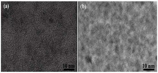 Figure 6. (a) HRTEM image of ZCGQDs; (b) HRTEM image of ZCGQDs after Cu2+ was added.