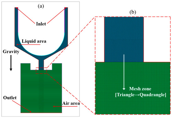 In this paper, a multi-coupled phase change model of fluid flow was developed, using the ANSYS Fluent software. The software uses the VOF algorithm to simulate and analyze the fluid flow [14]. In the VOF algorithm, the incompatible fluid components share a common set of momentum equations, and the tracking of the interphase interface in the computational domain is achieved by introducing a variable , which represents the phase volume fraction [15].