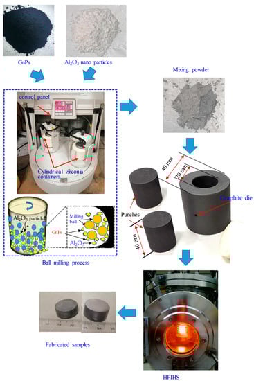 11]. Alumina/graphene nanocomposites with varying graphene contents have been successfully produced through powder metallurgy technologies such as high-frequency induction heating (HFIHs), hot pressing (HP), spark plasma sintering (SPS), and hot isostatic pressing (HIP). Many studies have focused on enhancements in the properties of the Al