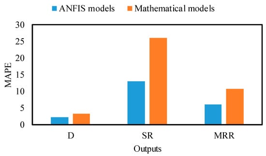 51]. In addition, integrating the ANFIS approach with optimization methods as a fitness function provided accurate results compared to the Taguchi and RSM models. Conde et al. [