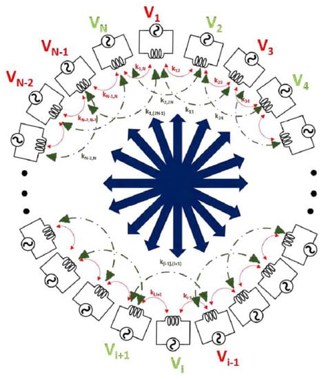 In [23], power flow selectivity and scalability specifications were investigated for a multiple access WPT. In that work, code division multiple access wireless power transfer (CDMA-WPT) was presented that let to achieving a stable power flow among various connected networks of devices. Figure 2 shows the multiple transceivers at the same time as well as the use of the CDMA-WPT system where the zero power factor was employed to achieve the orthogonal codes.