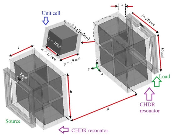 Das et al. presented a metamaterial-coupled WPT, shown in Figure 3, that is long-range and highly efficient based on the cubic high-dielectric resonator making the system less sensitive to the displacement of the receiver coil [25].