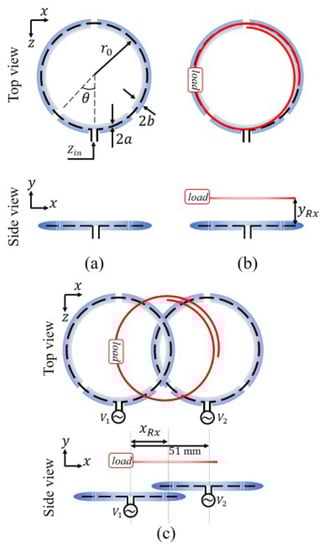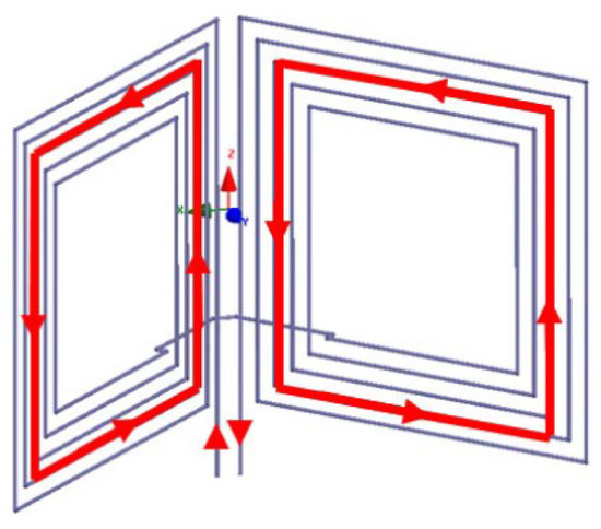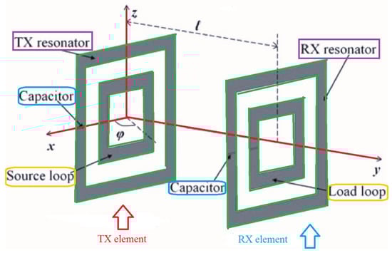 Liu et al. developed a planar strongly coupled magnetic resonance (SCMR) WPT system leading to keep the efficiency maximized in comparison with the inductive coupling [31]. The SCMR was demonstrated to be insensitive enough for the misalignment between the Tx and Rx elements. The typical structure of the SCMR is depicted in Figure 8.