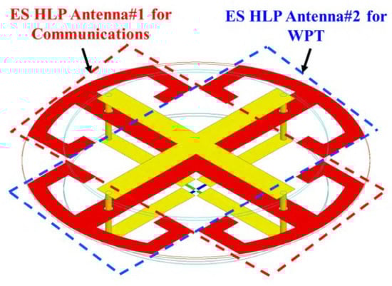 In [33], an electrically small Huygens dual-functional WPT system was presented where it operates in the 915-MHz band. The general structure is shown in Figure 10, which includes the Huygens linearly polarized (HLP) antennas. That system can easily find applications in Internet-of-Things (IoT) wireless communication systems.