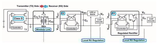 - Lee, B.; Kiani, M.; Ghovanloo, M. A Triple-Loop Inductive Power Transmission System for Biomedical Applications. IEEE Trans. Biomed. Circuits Syst. 2016, 10, 138–148. [Google Scholar] [CrossRef]