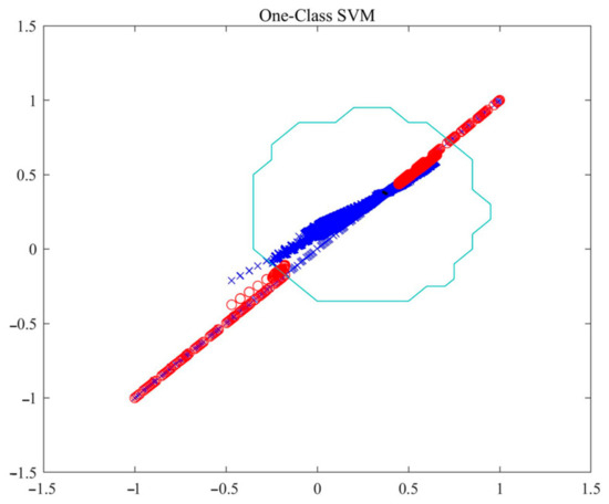 Select reasonable performance parameters to build the OCSVM model, ocsvm = OneClassSVM (kernel = ‘linear’, nu = 0.1), the kernel function of the model is the linear kernel. The test output is shown in Figure 7.