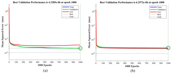 MSE and R2 are important indicators for evaluating the prediction performance of neural network models. The closer the MSE is to zero, the better the model selection and fitting effect, and the more successful the data prediction. The closer R2 is to one, the better the model fit is. From Figure 9 and Figure 10, it can be seen that when the system builds the neural network model, the MSE eventually converges to zero and the R2 takes values close to one, which reflects the good prediction performance of the system.