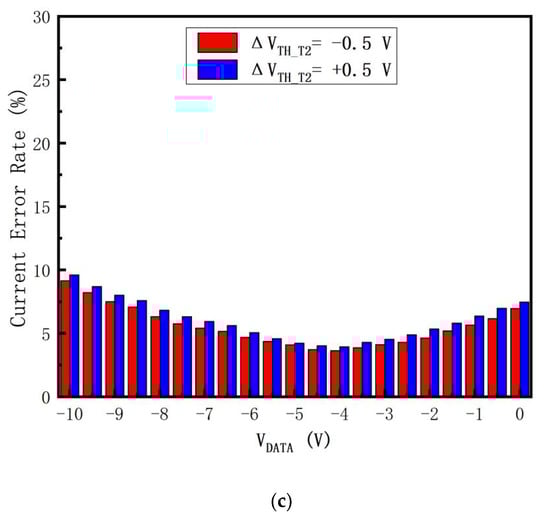 From (13), it is found that the OLED current is positively correlated with VTH_OLED. Therefore, the circuit can compensate the OLED degradation [29,30,31].