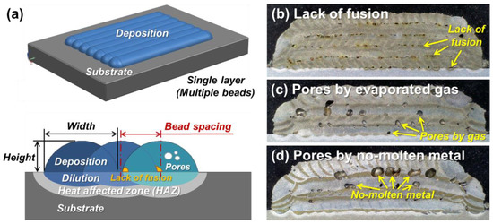 - Shim, D.S.; Baek, G.Y.; Seo, J.S.; Shin, G.Y.; Kim, K.P.; Lee, K.Y. Effect of layer thickness setting on deposition characteristics in direct energy deposition (DED) process. Opt. Laser Technol. 2016, 86, 69–78. [Google Scholar] [CrossRef]