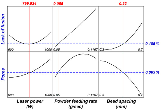 - The procedures to optimize the process parameters of the power-fed DED served as an effective statistical methodology to quantitatively derive a set of process parameters to homogeneously deposit a material and minimize the defects in the powder-fed DED. They demonstrated that the predicted models in the methodology should precisely approximate the actual experimental results.