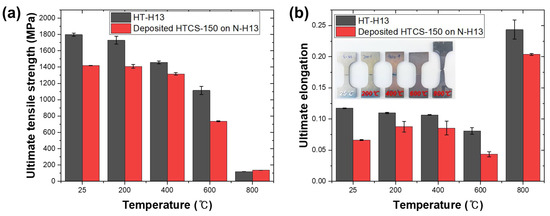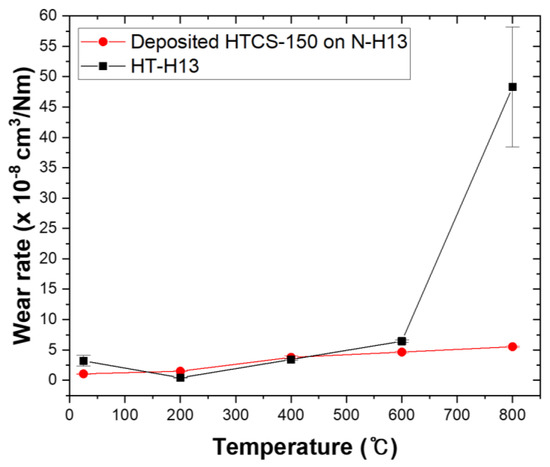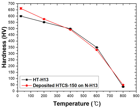 - The HTCS-150 deposited via the powder-fed DED process showed a hardness as good as HT-H13. Compared to HT-H13, the HTCS-150 also exhibited a relatively high tensile strength at elevated temperatures and a superior wear resistance above 600 °C. It is attributed that the higher molybdenum, vanadium, and tungsten composition of the HTCS-150 leads to mechanical stability in high temperatures.