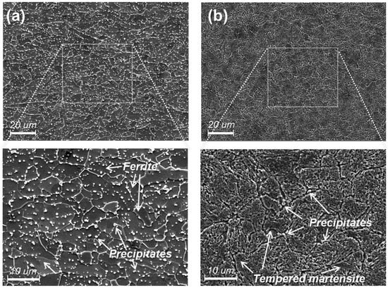 - Chen, Y.W.; Huang, B.M.; Tsai, Y.T.; Tsai, S.P.; Chen, C.Y.; Yang, J.R. Microstructural evolutions of low carbon Nb/Mo-containing bainitic steels during high-temperature tempering. Mater. Charact. 2017, 131, 298–305. [Google Scholar] [CrossRef]