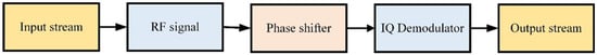 Figure 5 shows the block diagram of the actual phase shifter used in a hybrid beamforming architecture. The RF signal converts the Simulink signal to the RF block set circuit envelope voltage or current. Here, the phase shifter replaces the S-parameters of the ideal phase shifter parameters with our actual phase shifter parameters. An IQ demodulator achieves perfect reconstruction of the in-phase component and quadrature component by exploiting the quadrature-phase relation between the signal in-phase component and a signal quadrature component.