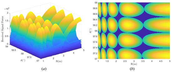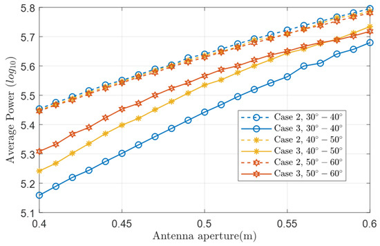 One can see that the received power of Case 3 is greatly affected by different regions, and the overall average power is lower than Case 2. The larger the antenna aperture is, the greater the average received power in case 3 is. When the smaller antenna aperture and region are closer to , a higher receiving power threshold, i.e., , can be chosen to improve the channel capacity.