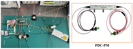 where and are the polarization extinction ratios in the X and Y polarization directions, respectively, and . The signal is input into PDC-PM for phase modulation, and PD is used for photoelectric detection.