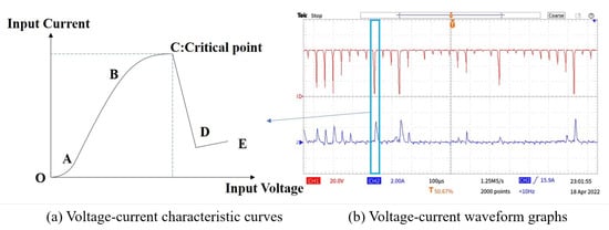 Voltage–current characteristic curve of electrochemical discharge machining process.