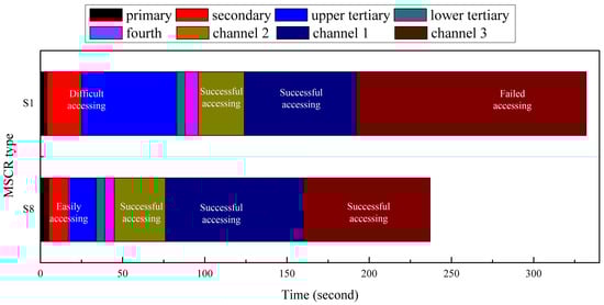 Recorded MMCCR status of Schemes (a) S8 and (b) S1 before accessing the three channels.