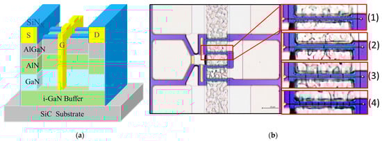 - Palacios, T.; Chakraborty, A.; Rajan, S.; Poblenz, C.; Keller, S.; DenBaars, S.P.; Speck, J.S.; Mishra, U.K. High-power AlGaN/GaN HEMTs for Ka-band applications. IEEE Electron Device Lett. 2005, 26, 781–783. [Google Scholar] [CrossRef]