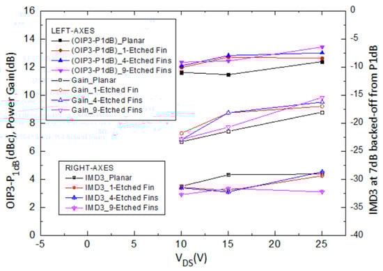 - Nagahara, M.; Kikkawa, T.; Adachi, N.; Tateno, Y.; Kato, S.; Yokoyama, M.; Yokogawa, S.; Kimura, T.; Yamaguchi, Y.; Hara, N.; et al. Improved intermodulation distortion profile of AlGaN/GaN HEMT at high drain bias voltage. In Proceedings of the Digest. International Electron Devices Meeting, San Francisco, CA, USA, 8–11 December 2002; pp. 693–696. [Google Scholar] [CrossRef]