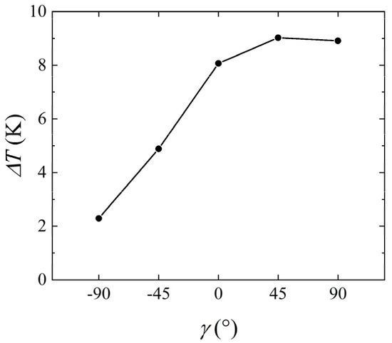 γ = −90°, the temperature difference was 2.29 K, and this value was 8.91 K for