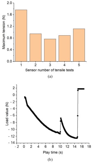 Tensile test results of welded components: (a) the maximum force of 5 samples when stretching; (b) the stretching process of the sample with the maximum tension.