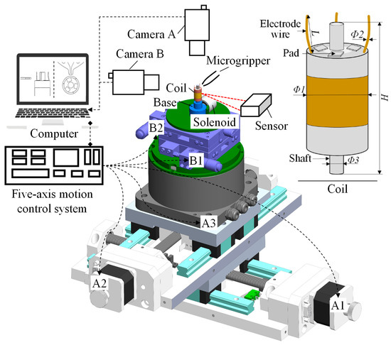 L easily causes the microgripper to fail to capture the wire; in addition, the wire cannot be accurately pulled to the center of the pad, or else the tip of the microgripper starts to collide and fracture because of closing to the shaft of the coil. In conclusion, the coil eccentricity detrimentally impacts the control accuracy of the system, thus compromising the reliability and stability of the whole system. Consequently, it is of paramount importance to measure and correct the eccentricity of the coreless coil in the wire-traction system.