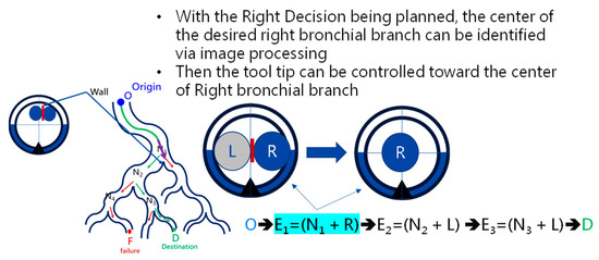 In the proposed path planning and navigation algorithms, the correctness of image processing to identify a Wall and map the identified image to the planned Event is significant. Furthermore, a major point of difference compared to other navigation algorithms or solutions is that the accurate position of the tip of the robotic bronchoscopy is not required during the entire navigation in the proposed navigation scheme in this paper. The only information required is a correct map and record of the planned Events that are triggered. In addition, making the related appropriate Decision at the correct Node is also significant.