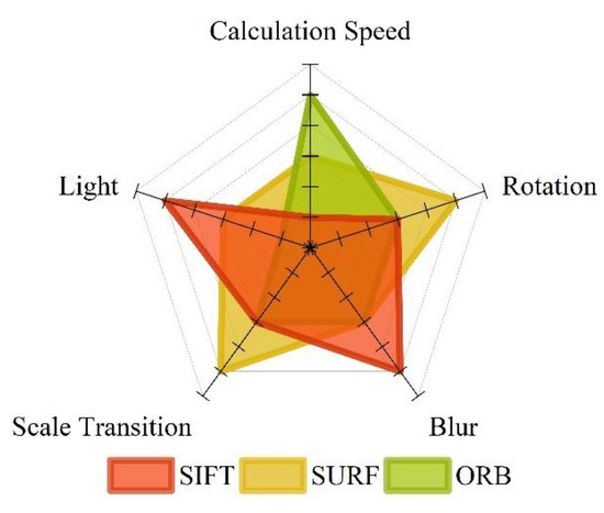 In the experiment, different methods were selected for feature extraction and matching. The poses calculated using the epipolar constraint differed in terms of feature matching pairs. As described in