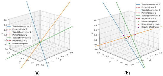After obtaining the pose information, namely, the rotation vector and the translation vector, it is the last step in the positioning process to determine the final coordinates according to the direction vector whose modulus length is unknown and only represents the relative position relation. A geometric relationship composed of multiple direction vectors can be constructed through the pose transformation of a single query image and multiple dataset images. All direction vectors will theoretically intersect at the same point, i.e., the undetermined point where the user is located. However, it is difficult for multiple vectors to converge under the influence of measurement and calculation errors. The authors of [