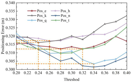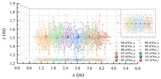 In order to observe the localization experimental results of the proposed method in detail, scene Ⅱ was taken as an example to locate the six points Pos_e, Pos_h, Pos_k, Pos_n, Pos_q, and Pos_t, and the positioning results were visualized. According to the reasons mentioned in