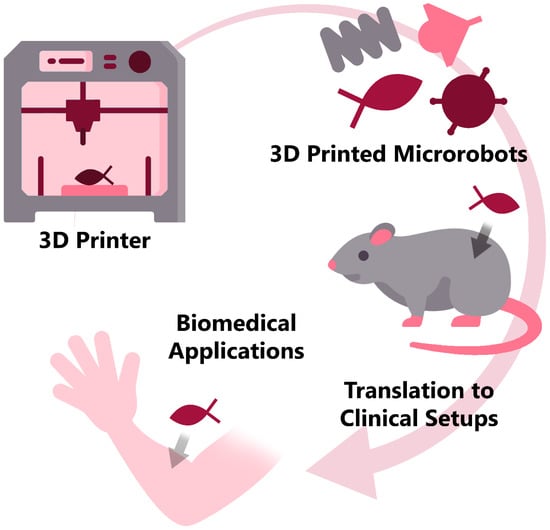 2]. In general, depending on their end use, microrobots can be designed and functionalized accordingly for scientific and industrial applications. Three-dimensional printing technology provides cost-efficient fabrication of different microrobot types with diverse designs and high-end biomedical applications toward translational medicine (