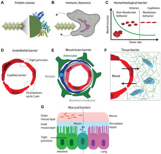 16]. An adsorption layer, called the protein corona, is usually formed around a microrobot inside the body as a result of an immoderate amount of protein interacting with its surface. As a result of this layer, some functions of the microrobots related to the surface properties are subject to change. First, the swimming speed of the microrobot can be highly influenced by changes in surface polarity. Furthermore, a bigger nuisance is that corona formation may activate protein misfolding and aggregation, creating an immune reaction that can result in the destruction of microrobots. Finally, unforeseen changes in the surface may prevent chemical, biological, or mechanical functions, such as the mechanics of drug release and the sensing mechanism of environmental signals, to act as designed. Additionally, microrobots that are aimed at use in the vascular system may encounter a dynamic rheological imbalance problem of the blood flow, depending on the vessel thickness, stream power, and hematocrit value. Blood is a non-Newtonian fluid [