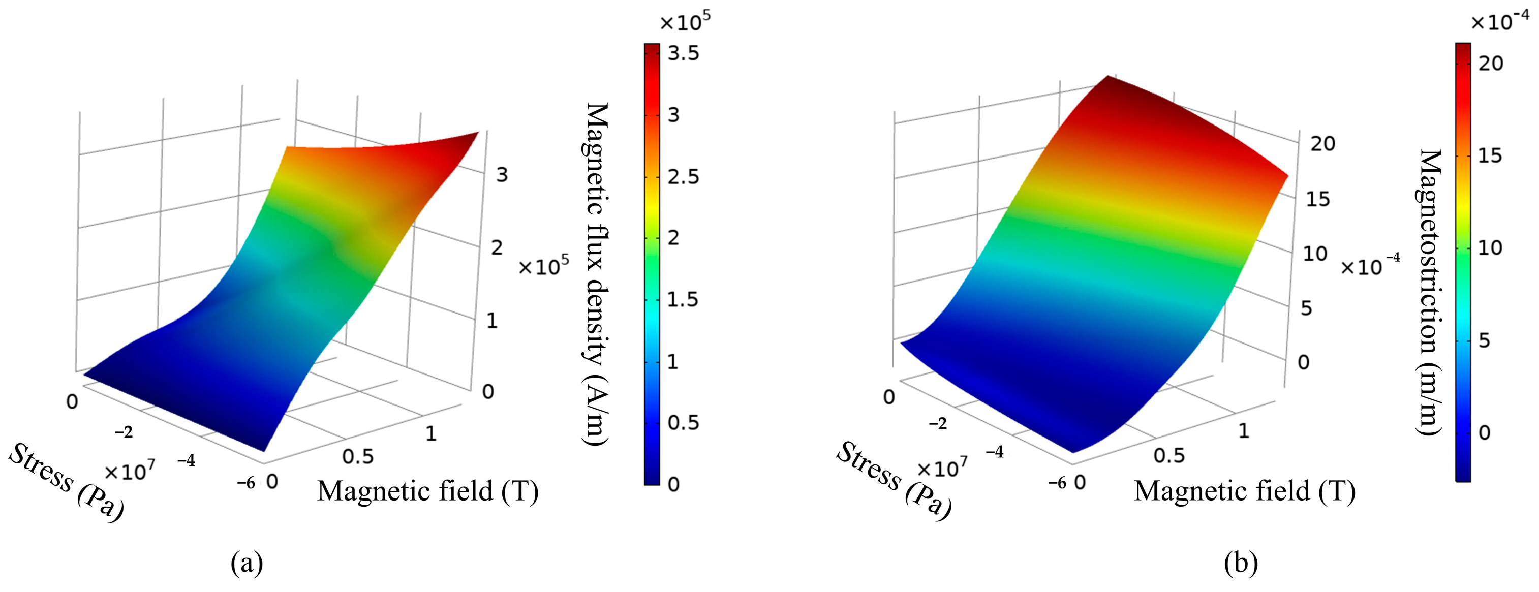 - Xiao, Y.; Gou, X.F.; Zhang, D.G. A one-dimension nonlinear hysteretic constitutive model with elasto-thermo-magnetic coupling for giant magnetostrictive materials. J. Magn. Magn. Mater. 2017, 441, 642–649. [Google Scholar] [CrossRef]