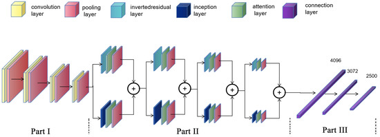 The first two parts of the model need to be properly structured and the hierarchy optimized to enhance performance. In the third part, the feature map is processed by the spreading layer and two fully connected layers with output dimensions of 3072 and 2500, which can generate a feature vector with an output dimension of 1 × 2500 to represent the phase of the transducer in the PTA. The overall structure of the model is shown in Figure 4.