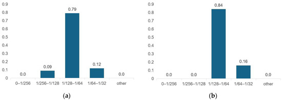 To measure the prediction performance of the RIE-Net neural network for the entire test dataset. The mean values of the phase errors () of the data set were statistically evaluated, and the results are shown in Figure 10. As seen in the figure, the average phase error of the RIE-Net method predicted data is no more than π/32, the prediction error accuracy of most of the data is between π/128 and π/64, and the highest error accuracy can reach between π/256 and π/128. Since the PTA device is driven by an FPGA [14], the phase interval is [0, 2π] discrete distribution, and the work of G. Memoli et al. illustrates that 4-bit phase coding is sufficient to produce a high-fidelity holographic acoustic field [25] with the corresponding phase coding resolution of π/8. Therefore, the performance of the proposed RIE-Net neural network is applicable in practical applications.