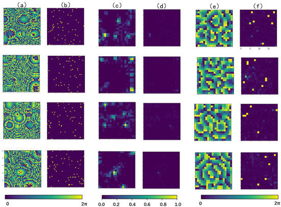 Four randomly selected sample data pairs from the test set are presented in image form, as shown in Figure 11. The data pairs specifically include the phase distribution of the PTA, as well as the sound pressure intensity and phase of its corresponding holographic acoustic field at a certain horizontal cross-section, where the sound pressure intensity is normalized for better comparison.