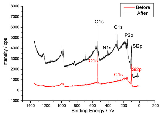 Figure 3. XPS spectra for sample before and after functionalizing DNA to the Si substrates.