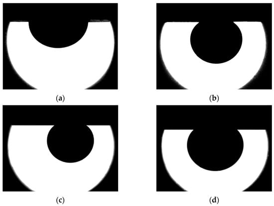 The determination of the wetting angle in the system polymer solution-oil-rock was carried out. Figure 8 shows typical photographs for determining the contact angle. The contact angle in the water-oil-surface system was found to be 106° (see Figure 8a). As for polymer solutions, there was an increase in the contact angle, which constituted 161° when using a 0.1% solution of polyacrylamide 2540. As for all considered 0.1% polymer solutions, close values of the contact angle were obtained.