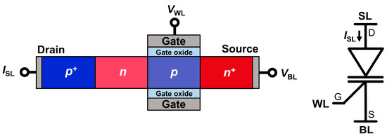 28. Lee, B.; Kim, M.; Kim, J.; Yoo, S.; Shim, T.; Park, J. Design of n+-base width of two-terminal-electrode vertical thyristor for cross-point memory cell without selector. Nanotechmology 2021, 32, 14LT01. [Google Scholar] [CrossRef]